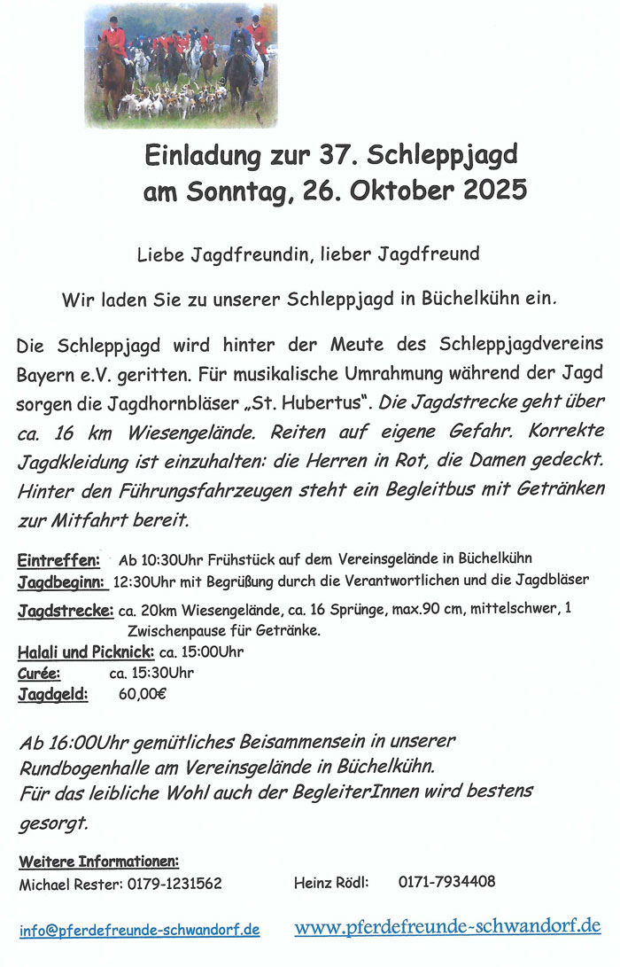 für den Verein und die Schleppjagd einbringen begrüßen zu können.