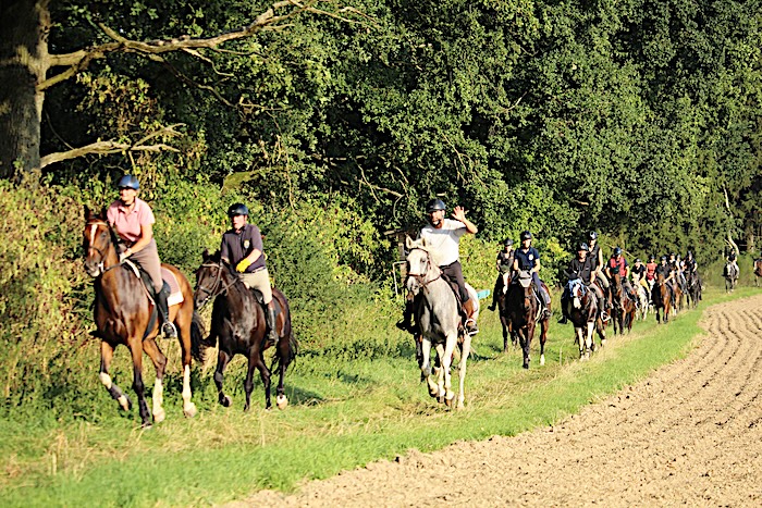 Gruppe, bevor es über unsere Wellenbahn im Wald wieder hinaus auf