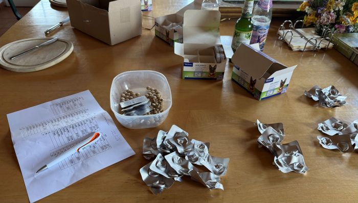 Sonntag für die Hunde, Sissi, Diana und Kathrin das Entwurmen auf