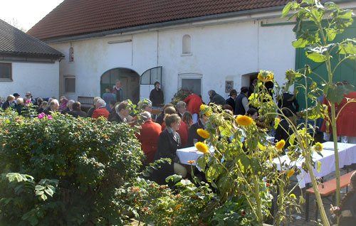 27. Sept. 2008 Toni Wiedemann feiert Jubiläum auf Gut Koppenzell Der Schleppjagdverein von Bayern und sein Master als Jagdherr luden zur Schleppjagd und zur Hundetaufe des Z-Wurfes auf Gut Koppenzell ein. So viele Mitglieder folgten seiner Einladung, dass der Parkplatz die Gespanne nicht fassen konnte.  Toni Wiedemann feierte 25 Jahre Meuteführung und zugleich Geburtstag, der genau an diesen Samstag fiel. Bei Sonnenschein und kühlem Lüfterl versammelten wir uns im Innenhof des Gutes zum Jagdfrühstück, das wir uns munden ließen.  Anschließend erfolgte die Taufe des Z-Wurfes, dessen Patenschaft die Familie Zwicky aus Zürich übernahm. Herr Zwicky, der in seiner Ansprache die gute Freundschaft mit Toni hervorhob, hatte sich schon vor Jahren für den Z-Wurf vormerken lassen und war eigens aus Zürich angereist. Toni dankte Herrn Zwicky, verwies auf seine außerordentlich guten Ergebnisse in der Foxhoundzucht über die Jahre und wünschte auch für diesen Wurf beste Erfolge.  Anschließend folgten wir Toni an den Kennell zu den Foxhounds und gratulierten Toni Wiedemann zu seinem sagenhaften Erfolg als Meuteführer über 25 Jahre! Für den Schleppjagdverein hielt Robert Guggenberger die Laudatio und die große Reiterschar stimmte mit begeisterten Klatschen seinen Ausführungen zu.