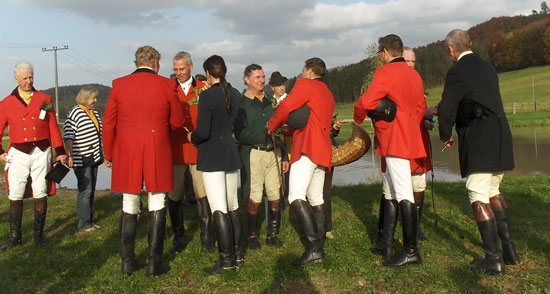 Die Reiter nahmen die Brücke und den Jagdknopf ohne Pferd entgegen.