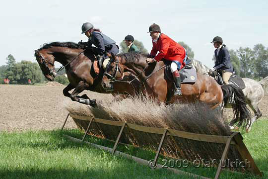 Ansonsten folgte das Jagdfeld geschlossen und diszipliniert, was nicht zuletzt der erfolgreichen Arbeit der vergangenen Trainingswochen zu verdanken war. .jpg) Hindernisse taten ein übriges, um das Jagdgeschehen zu beleben. .jpg) .jpg)