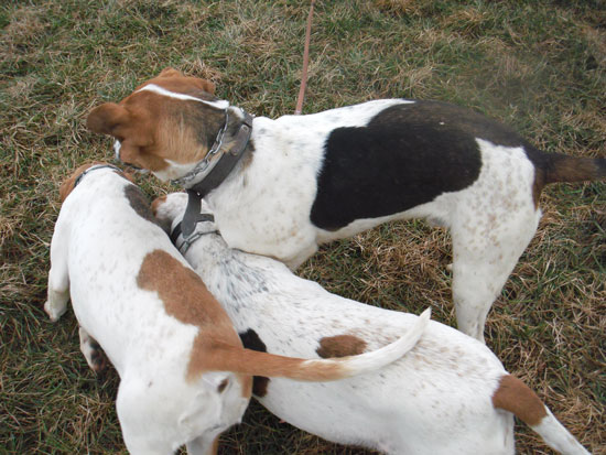 Und einmal von links. Von links: Asta, Uschi und Chico.