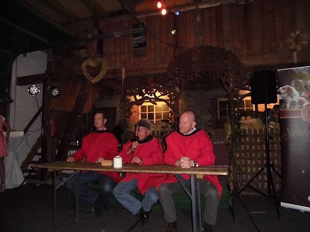 Auch Toni Wiedemann und die Veranstalter waren mit uns und den Zuschauern zufrieden uns so war es kein Wunder, dass die Abendveranstaltung bis auf den letzten Platz ausgebucht war. Ein Vorspeisenbuffett, wie wir es in der großen Auswahl und Qualität nur selten erlebten, die Hauptspeisen mit drei wohlschmeckenden Fleischsorten und dann noch die Nachspeisen, es war überwältigend. Ein Jagdgericht tagte, das es in seiner Komik gut mit Professionellen hätte aufnehmen können, kam bestens an. Es gab Beifallsstürme.