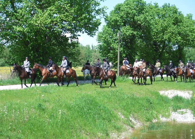Danach begaben wir uns zur Vorderseite des Gutes, jagten auf einer Wiese mit mehreren Hindernissen, um schließlich mit einer langen Galoppade auf unseren Ausgangspunkt zurückzukehren.