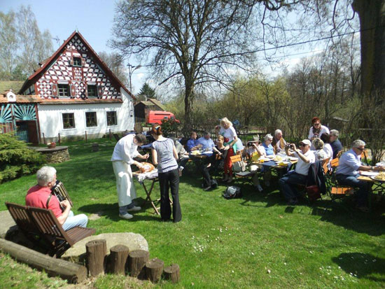 Wellness / Kultur – pur! Reise Marienbad - Karlsbad – Königswart - 25. – 28. April 2013 Von München – Allershausen - Regensburg ging es über Waidhaus nach Mariánské Lázne (Marienbad). Dort trafen wir auf unsere Reiseleiterin, Frau Blanka Horáková wie auf 3 vorzeitig angereiste und bereits erholte „Nordlichter“ sowie auf die Familie Kupke. Gleich ging es zum Mittagessen und zur Reitakademie. Es handelt sich um die einzige Berufsschule in Tschechien, welche die vollständige Fachausbildung mit Abitur in klassischen Disziplinen des Reitsports und in der Organisation des Reitsports im Rahmen der Tschechischen Reitföderation anbietet. Nun schnell zum Hotel – Gabi Westphal-Bierl „veranlasste“ ein Standkonzert unter dem Motto „wie trommelt man ein Dorf zusammen“. MAUI. Vorzügliches Abendessen in einem der besten Restaurants in Marienbad. 5 Gänge-Menue vom Allerfeinsten – ein „Hoch-Genuss“.Am Freitag nach dem Frühstück - Abfahrt nach Nebanice. Das ursprünglich an einem Egermäander angelegte Dorf Nebasnicz wurde 1391 als Besitz der Egerer Patrizierfamilie Juncker erstmals urkundlich erwähnt. Nebanice ist ein Zentrum der Pferdezucht mit Spezialisierung auf die Kladruber Pferderasse Mittag ging es bei traumhaften Wetter nach Doubrava und wir speisten im Garten – Prager Schinken mit Kartoffelsalat – Live-Musik und ganz viel Spaß. Anschließend folgte die Besichtigung des Gestüts für Arabische Pferde „Doubravský Arab“. Das Gestüt entstand in einem Egerländer Bauernhof aus dem 19.Jahrhundert. Nun kam der spezielle Wellness-Part in Chodová Planá. Vom Bierbad (innere und äußere Anwendung) bis zur klassischen / speziellen Massage wurden wir „verjüngt & harmonisiert“. Anschließend das böhmisches Abendessen im Beerrarium Stará sladovna Der Samstag stand unter dem Motto „just walking“. Nach einem geführten Rundgang durch Marinebad – gab es im Bus eine kräftigende Brotzeit aus dem hohen Norden – mit dem Bus nach Karlsbad zum Stadtspaziergang. Abendessen – schwer verdient - im Hotel Esplanade, Marienbad. Am Sonntag früh hieß es Abschied nehmen – unsere Norddeutschen Freunde (mit Eigenanreise) wurden mit unser „a Kappella – Rolf“ lautstark verabschiedet. Nach dem Auschecken - Abfahrt nach Kynžvart (Königswart) und Besichtigung des Schlosses – der Sommersitz des österreichischen Kanzler Fürst Metterrnich. Weiter ging es zum Letzten Mittagessen – von der Wildpastete über einen Hirschbraten zum Blaubeerkuchen – ja nix auslassen – war angesagt. In Marienbad verabschiedeten wir „unsere Blanka“ sowie die Familie Kupke und fröhlich ging es zurück ins Bayernland. Für Wiederholungstäter sowie die Neuinteressierte: nächste Reise nach Tschechien: vorauss. 24. bis 27. April 2014 – Schwerpunkt Prag Wir freuen uns schon heute. Sabine Winterling Anreise über Augsburg - München - Allershausen - Regensburg - nach Marienbad