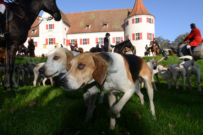 So wie die gut trainierten Jagdpferde, so steigern sich auch die von Toni Wiedemann bestens vorbereiteten Foxhounds von Jagd zu Jagd. Auf den gewundenen Pfaden und dem Auf und Ab des Geländes waren alle Beteiligten gefordert. Dazu noch die Bergab- und Bergaufsprünge die man selten bei anderen Jagden findet. Einen besonderen Genuss bot der alte Baumbestand. Die bunte Blätterpacht glänzte in der Sonne.