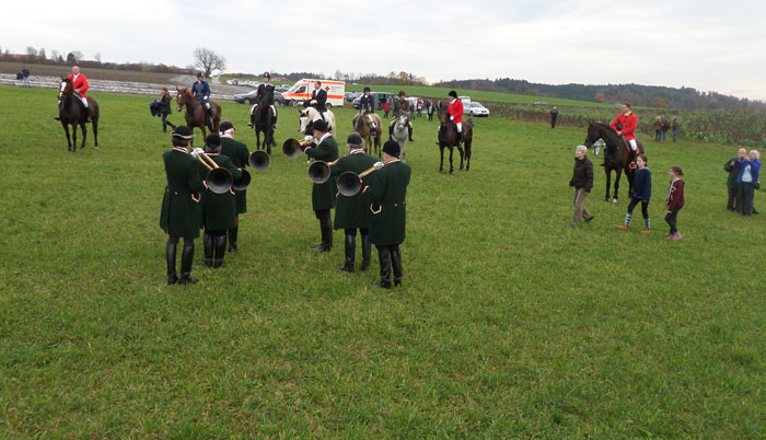 Die Bläsergruppe Bien Aller Baviere begleitete uns während der Jagd und sorgte wieder für Gänsehaut bei diesem stimmungsvollen Ausklang.