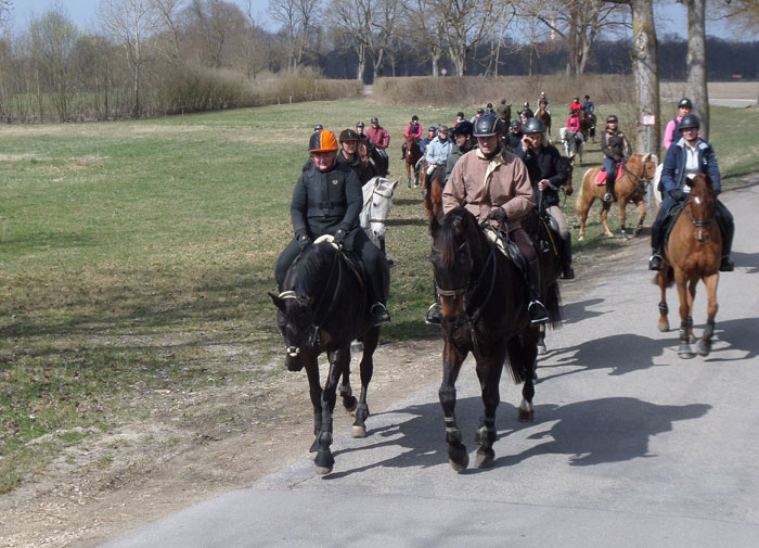 Nicht nur die Sonne lachte, auch die Reiter freuten sich über die schönen Wiesen Galopps. Manches Pferd wurde schon etwas lustig dabei. Klar doch, nach der langen Winterpause endlich mal wieder auf weichen Boden groß galoppieren - einfach toll.