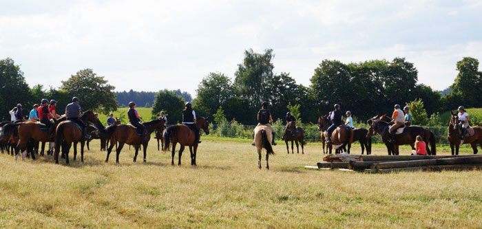 Lange ersehnt war er endlich da: der Beginn unserer Jagdtrainings. Aus nah und fern reisten ca. 30 Reiter mit ihren Pferden an, um das Jagdreiten mit ihrem Pferd zu lernen, es ihrem neuen Pferd beizubringen oder einfach nur, um Kondition zu tanken und sich und sein Pferd auf die neue Saison vorzubereiten. Dass das gleichzeitig immer einen netten Urlaub mit Gleichgesinnten bedeutet, macht die Sache um so schöner und nach eigenem Empfinden wird man um Jahre, ach was sag ich, um Jahrzehnte jünger, fühlt sich wie in Jugendzeiten, wenn man die Ferien auf dem Reiterhof verbringen durfte.