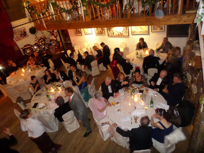 Nach dem Empfang trafen sich alle unten um sich Plätze zu suchen. An den festlich geschmückten Tischen lies es sich wohl speisen. Überall herrschte gute Stimmung.