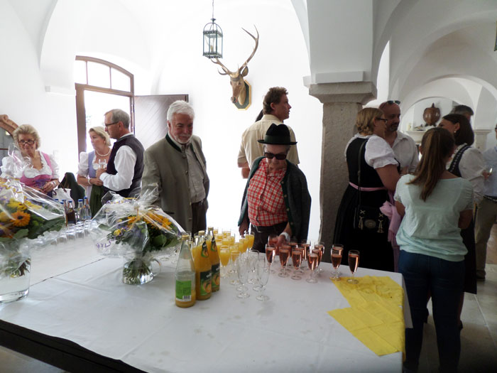 Nach dem Eintrag ins Jagdbuch unter dem Sonnenschirm gab es Sekt drinnen.