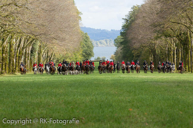 eingetroffen. Bald darauf griff die Gruppe zu ihren Parforcehörnern