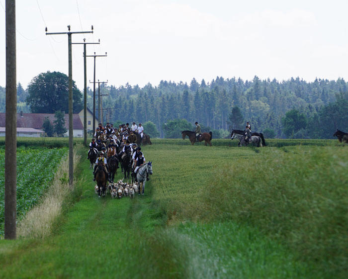 Geläut der Meute, da die Schleppe am Waldrand entlang führte.
