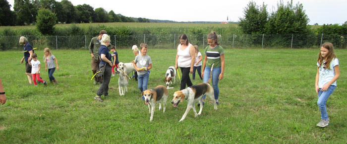 kurzen Getränkepause ging es mit einer Gruppe Hunde nach draußen.