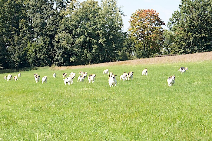 Equipage, im 16,5 Koppeln starken Pack gaben 7 von 11 Junghunden ihr