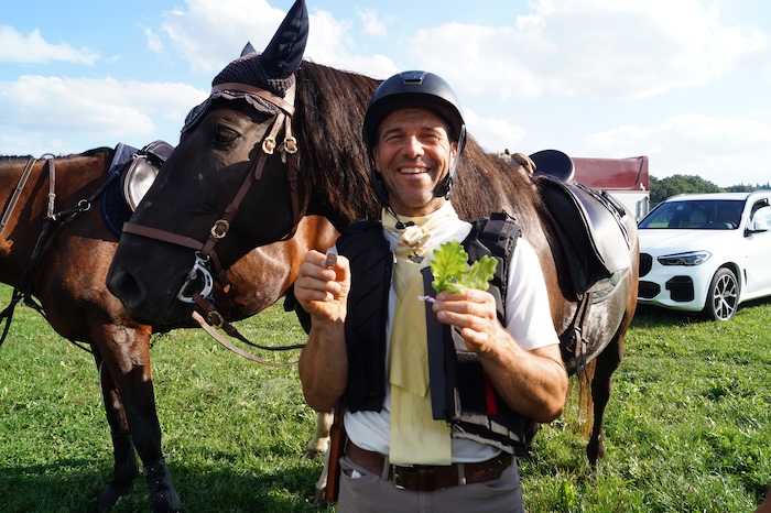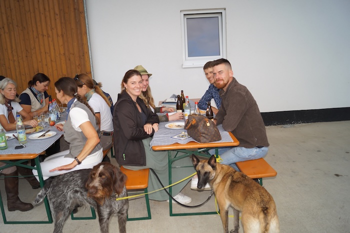 ersten kurzen Getränkestopp, bevor Kathrin mit Jagdherrn Klaus die
