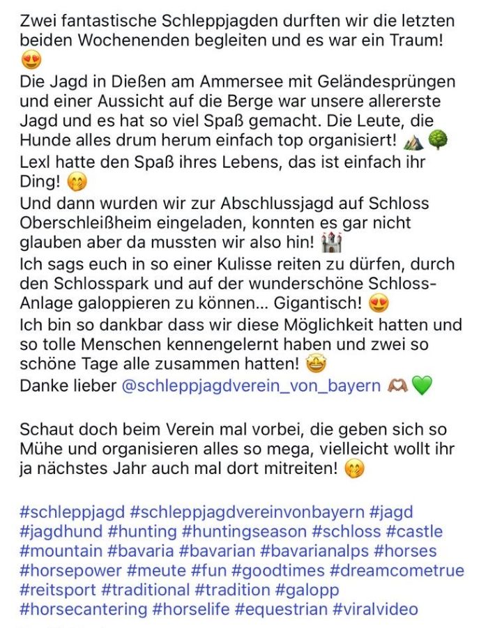 Dank Euch schon einige wunderbare Jagden mitreiten dürfen. Dies hat