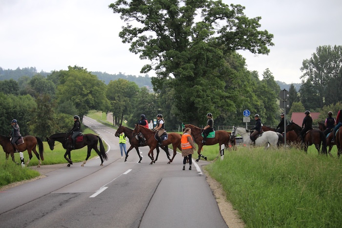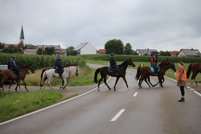 zunächst die Staatsstraße überquert werden, aber das Bodenpersonal