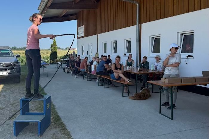 die Theorie am zweiten Tag vom Reiten mit den Hunden, stand ja