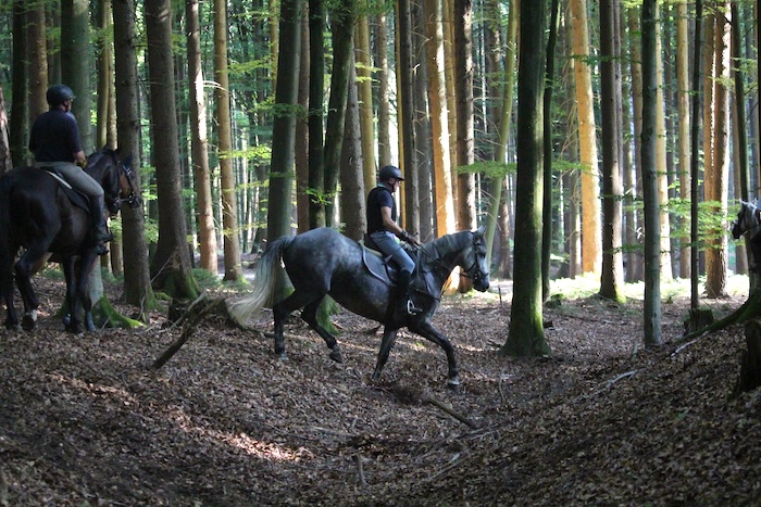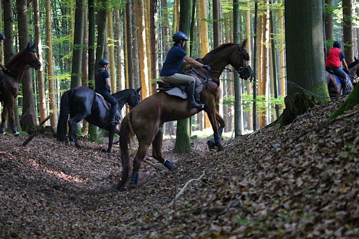 Gruppe, bevor es über unsere Wellenbahn im Wald wieder hinaus auf