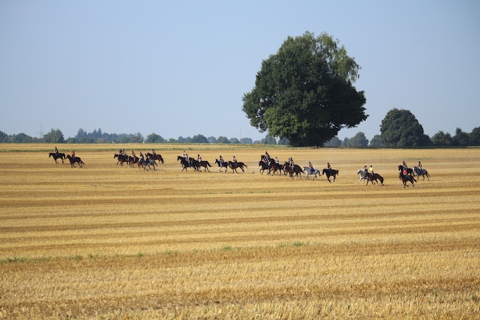 auf einem riesigen Stoppelfeld und einer kleinen Kletterpartie, übte